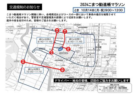 こまつ勧進帳マラソン開催に伴い、会場周辺およびコースの一部において車両の通行を制限させていただく場合があり、警察官や交通整理員の誘導により迂回をお願いします。